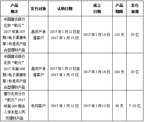 中国建设银行北京市分行定于2017年1月12日发行理财产品,现将相关发行情况公告如下: