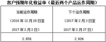 下个运作周期客户预期年化收益率于2017年2月3日(含)开始执行。