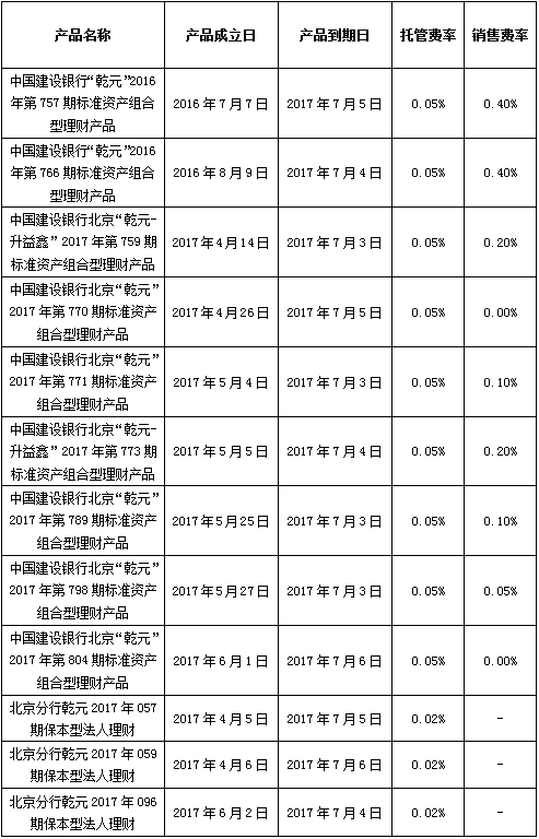 根据与投资者的约定,中国建设银行发行的下列理财产品已经到期并完成资金兑付,现将有关情况公告如下: