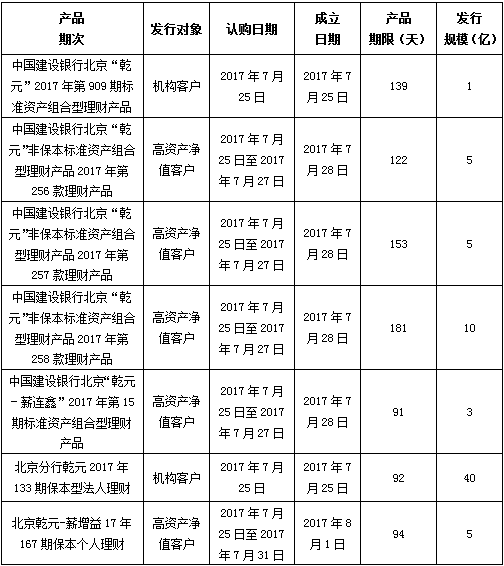 建行北京市分行理财产品发行公告2017年7月25日