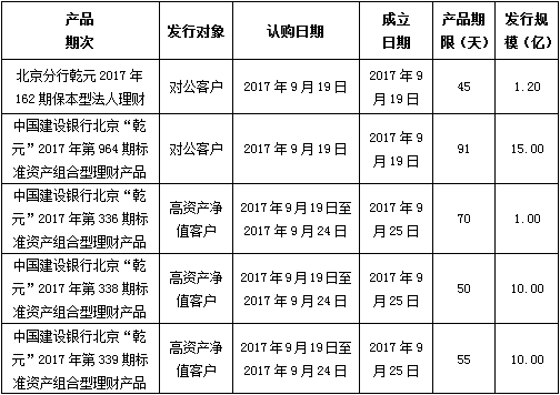 中国建设银行北京市分行定于2017年9月19日发行理财产品,现将相关发行情况公告如下: