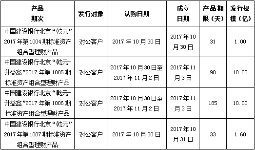 中国建设银行北京市分行定于2017年10月30日发行理财产品,现将相关发行情况公告如下:
