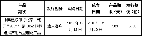中国建设银行北京市分行定于2017年12月11日发行理财产品,现将相关发行情况公告如下: