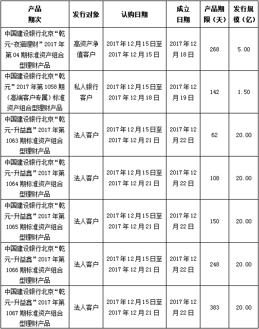 中国建设银行北京市分行定于2017年12月15日发行理财产品,现将相关发行情况公告如下: