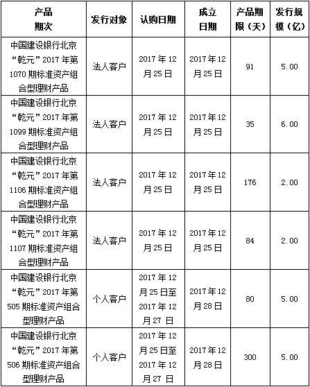 中国建设银行北京市分行定于2017年12月25日发行理财产品,现将相关发行情况公告如下: