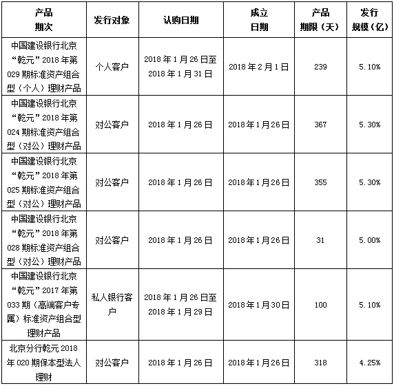 中国建设银行北京市分行定于2018年1月26日发行理财产品,现将相关发行情况公告如下: