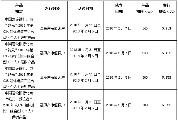 建行北京市分行理财产品发行公告2018年1月31日