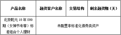 依照《中国银监会关于规范商业银行理财业务投资运作有关问题的通知》(银监发〔2013〕8号)要求,现对本期产品投资非标准化债权资产清单披露如下: