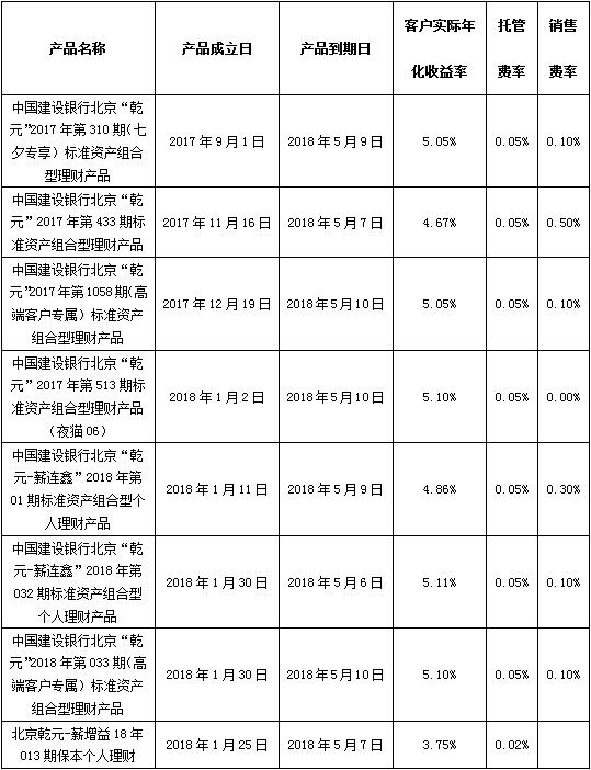中国建设银行个人类理财产品终止及清算公告2018年5月11日