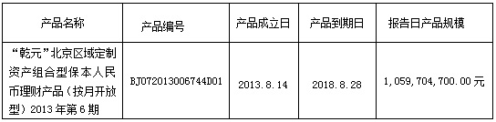 “乾元”北京区域定制资产组合型保本人民币理财产品(按月开放型)2013年第6期投资非标准化债权资产清单