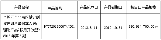 “乾元”北京区域定制资产组合型保本人民币理财产品(按月开放型)2013年第6期投资非标准化债权资产清单