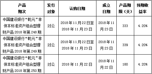 中国建设银行北京市分行定于2018年11月22日发行理财产品,现将相关发行情况公告如下: