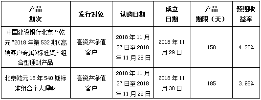 中国建设银行北京市分行定于2018年11月27日发行理财产品,现将相关发行情况公告如下: