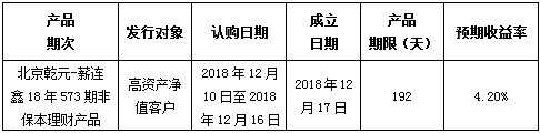 中国建设银行北京市分行定于2018年12月10日发行理财产品,现将相关发行情况公告如下: