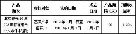 中国建设银行北京市分行定于2019年1月1日发行理财产品,现将相关发行情况公告如下: