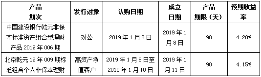 中国建设银行北京市分行定于2019年1月8日发行理财产品,现将相关发行情况公告如下: