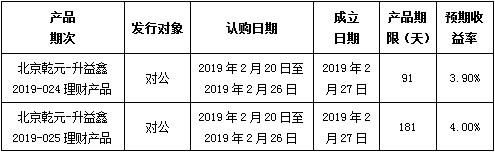 中国建设银行北京市分行定于2019年2月20日发行理财产品,现将相关发行情况公告如下: