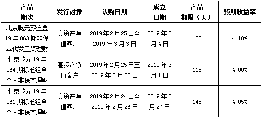 中国建设银行北京市分行定于2019年2月25日发行理财产品,现将相关发行情况公告如下: