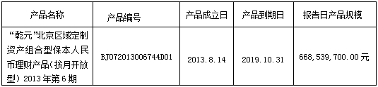 “乾元”北京区域定制资产组合型保本人民币理财产品(按月开放型)2013年第6期投资非标准化债权资产清单