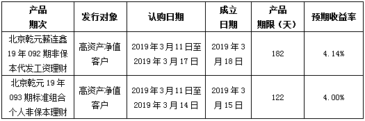 中国建设银行北京市分行定于2019年3月11日发行理财产品,现将相关发行情况公告如下:
