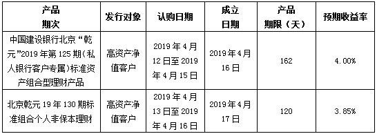 中国建设银行北京市分行定于2019年4月12日发行理财产品,现将相关发行情况公告如下: