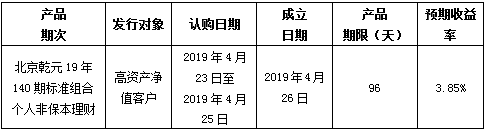 中国建设银行北京市分行定于2019年4月23日发行理财产品,现将相关发行情况公告如下: