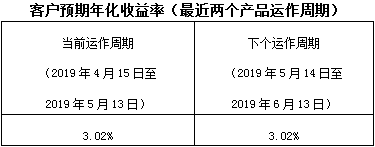 下个运作周期客户预期年化收益率于2019年5月14日(含)开始执行。