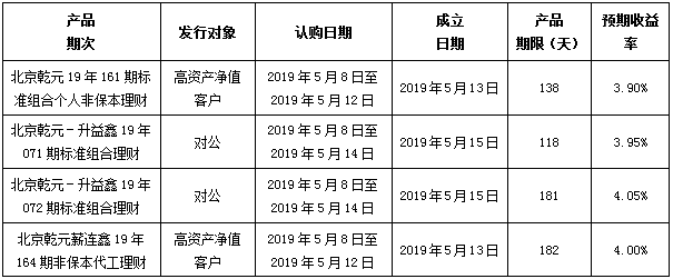 中国建设银行北京市分行定于2019年5月8日发行理财产品,现将相关发行情况公告如下:
