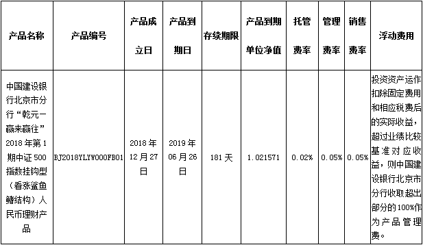 中国建设银行理财产品终止及清算公告2019年6月27日