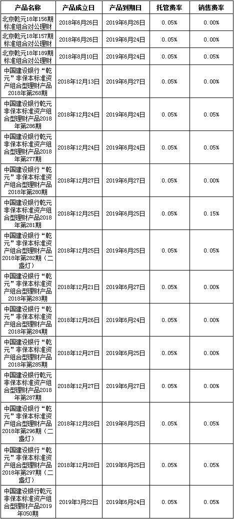 注:上述产品按照说明书中关于资产的投资类型和比例的约定进行投资,所投资非标准化债权资产已进行披露,产品运作收益超出客户实际年化收益率、托管费率及销售费率的部分将作为产品的浮动管理费用。特此公告。