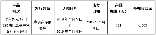 建行北京市分行理财产品发行公告2019年7月5日