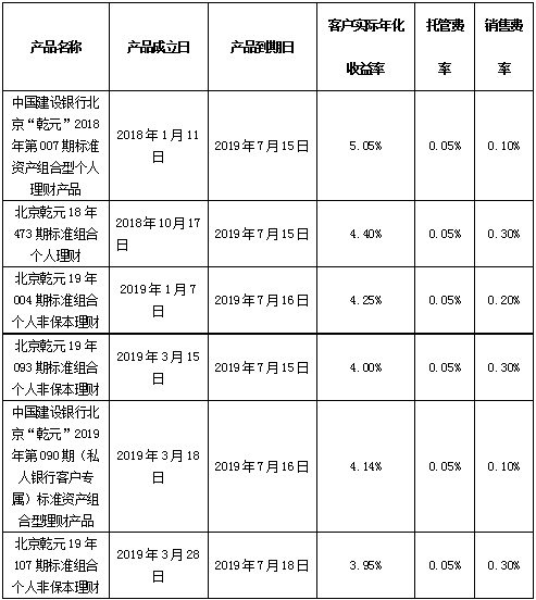 根据与投资者的约定,中国建设银行发行的下列理财产品已经到期并完成资金兑付,现将有关情况公告如下: