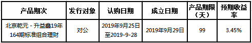 中国建设银行北京市分行定于2019年9月25日发行理财产品,现将相关发行情况公告如下: