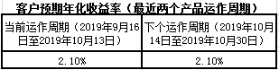下个运作周期客户预期年化收益率于2019年10月14日(含)开始执行。