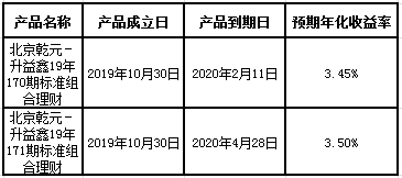 理财产品非标资产披露及资产质量变化公告2019年10月30日