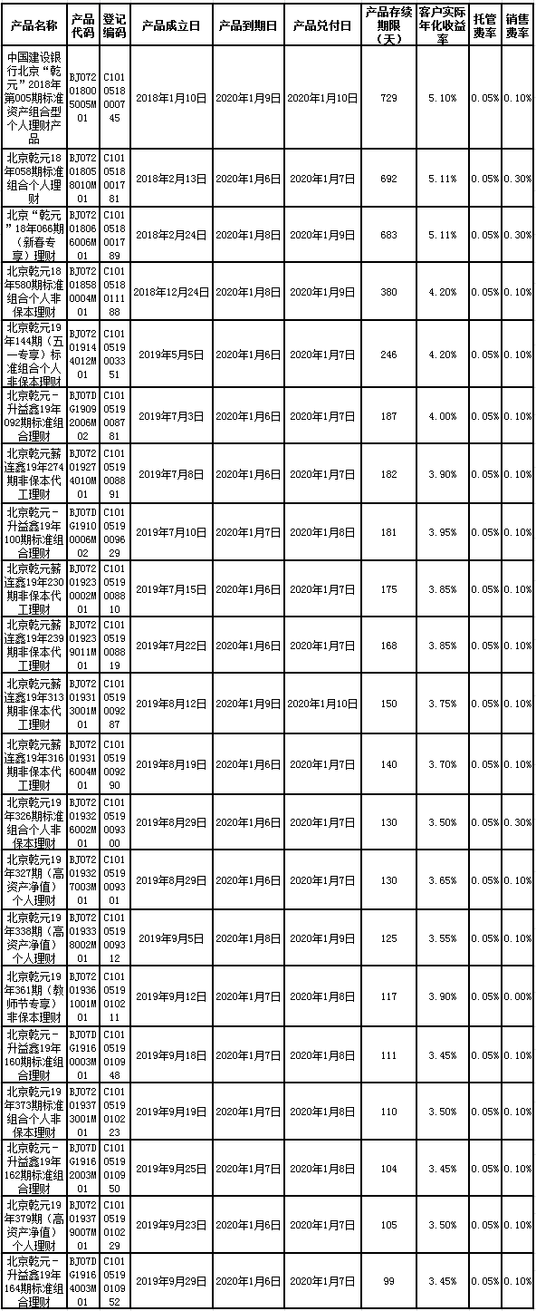 中国建设银行理财产品终止及清算公告2020年1月10日