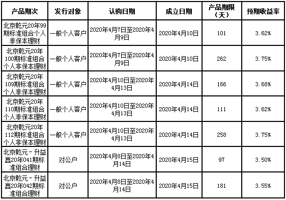 建行北京市分行理财产品发行公告2020年4月10日
