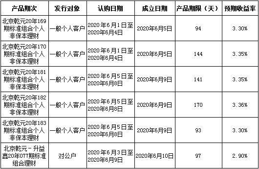 中国建设银行北京市分行定于2020年6月1日至2020年6月5日发行理财产品,现将相关发行情况公告如下: