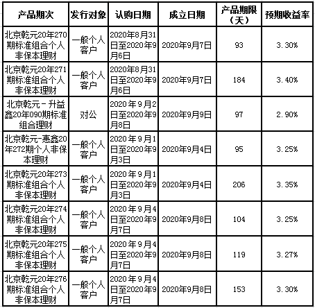 建行北京市分行理财产品发行公告2020年9月7日