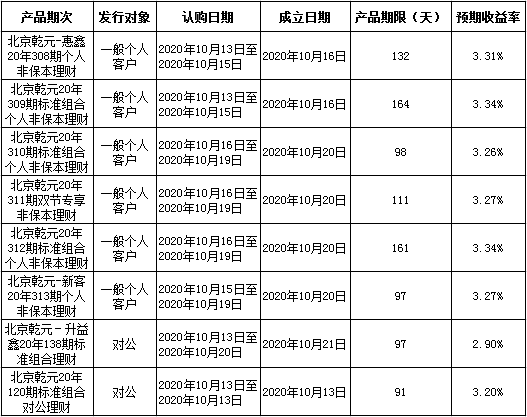 中国建设银行北京市分行定于2020年10月10日至2020年10月16日发行理财产品,现将相关发行情况公告如下: