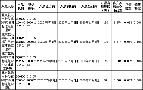 中国建设银行理财产品终止及清算公告2020年11月9日