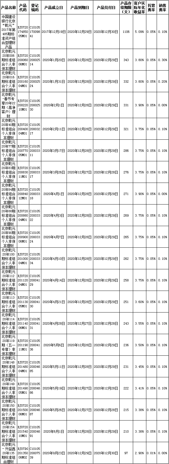 根据与投资者的约定,中国建设银行发行的下列理财产品已经到期并完成资金兑付,现将有关情况公告如下: