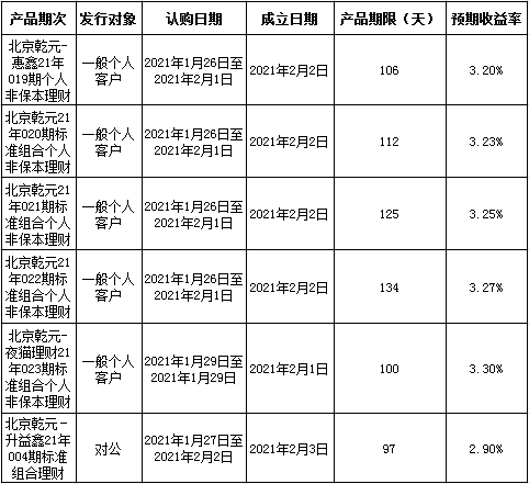 建行北京市分行理财产品发行公告2021年2月1日