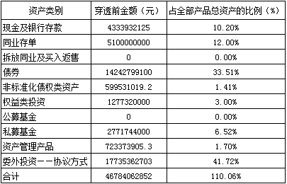 注:本表列示穿透后投资规模占比较高的前十项资产