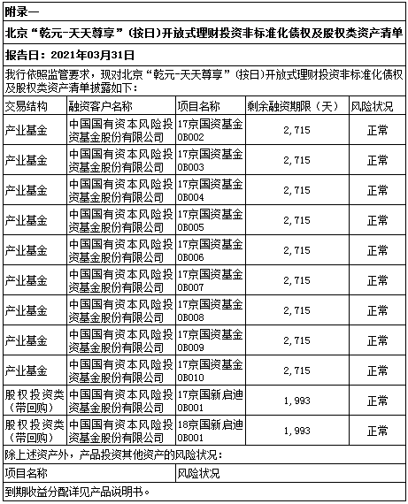 “乾元-天天尊享”(按日开放型)人民币非保本理财产品于2017年2月23日正式成立。截至报告日,本产品规模为2,488,625,291.06元,杠杆水平符合监管要求。