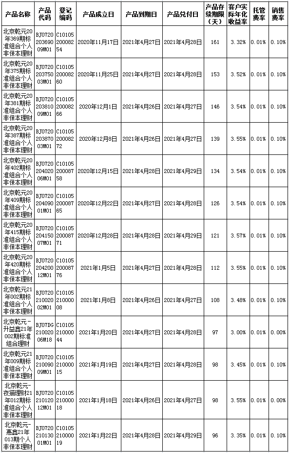 根据与投资者的约定,中国建设银行发行的下列理财产品已经到期并完成资金兑付,现将有关情况公告如下: