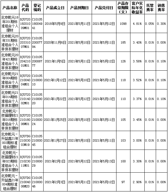 中国建设银行理财产品终止及清算公告2021年5月17日