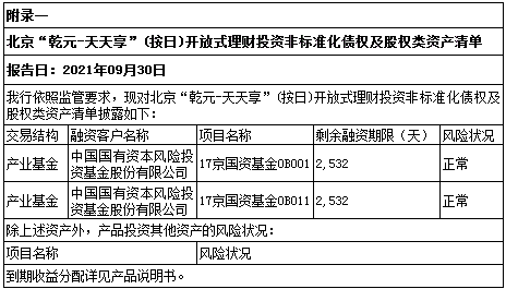 九、投资非标准化债权及股权类资产清单(见附录一)