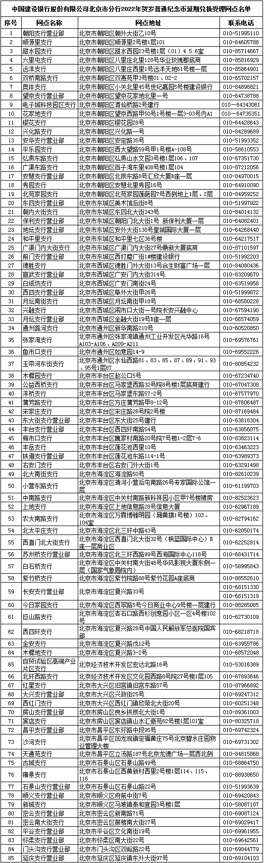 根据当前北京市疫情防控进展,为进一步做好2022年贺岁普通纪念币(以下简称“贺岁币”)发行工作,本着“金融为民”的原则,现就贺岁币延期兑换事宜公告如下:
