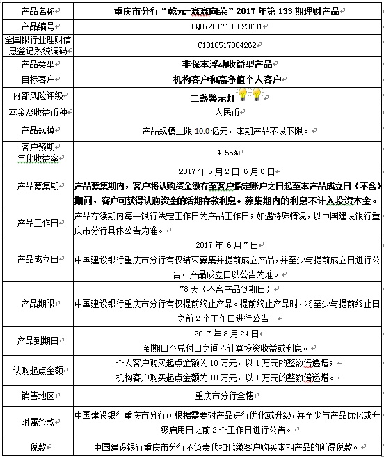 2017年第133期理财产品说明书